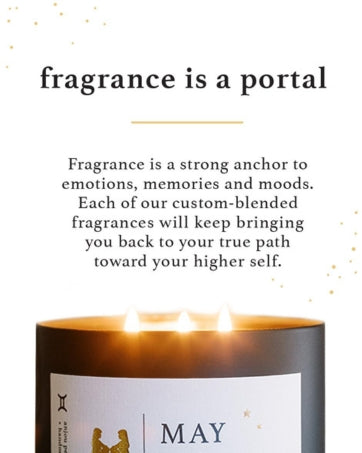 A personalized birthdate candle with custom fragrance, zodiac insights and a daily affirmation