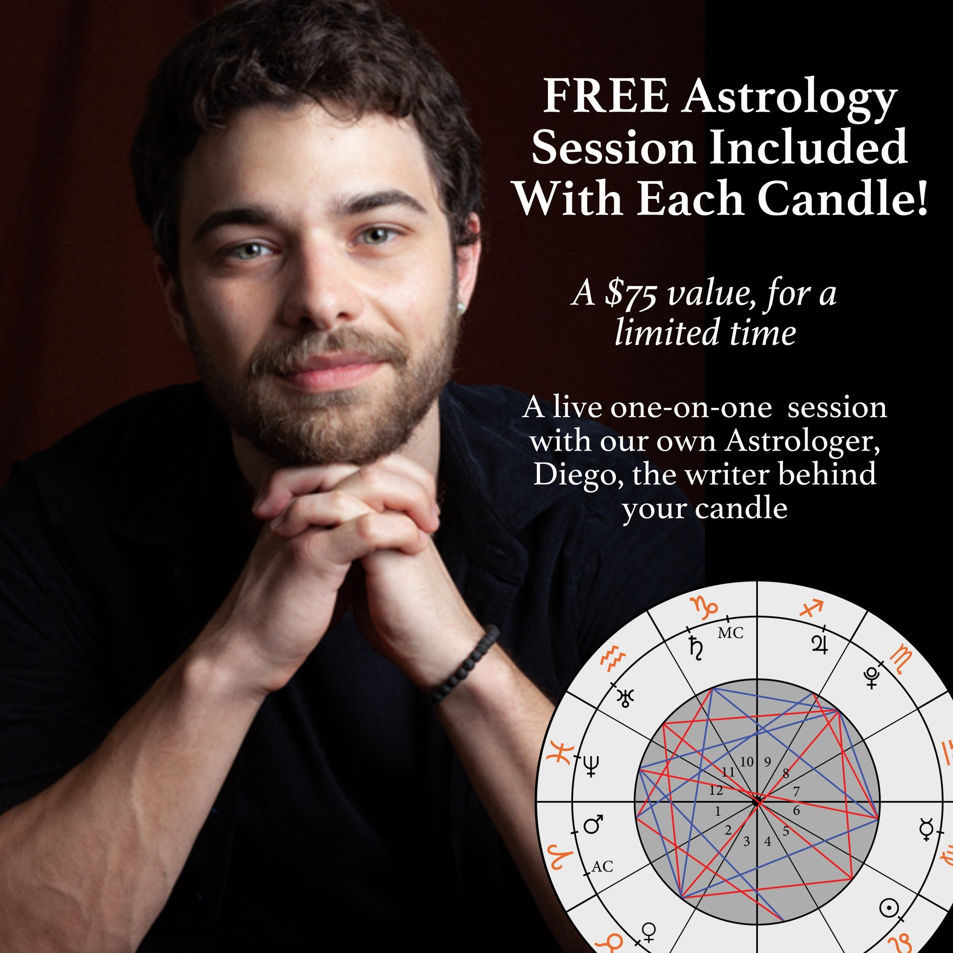 For a limited time, with the purchase of each candle, you will receive a FREE, live, 30-minute one-on-one session with our own astrologer, Diego. A $75 value!
